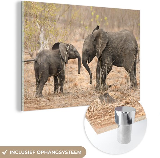 MuchoWow® Peinture sur verre - Deux jeunes éléphants - 150x100 cm - Peintures sur verre acrylique - Photo sur Glas