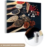 MuchoWow® Peinture sur Verre - Épices et Herbes sur Fond Noir - 120x90 cm - Peintures sur Verre Acrylique - Photo sur Glas