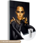 MuchoWow® Peinture sur Verre - Femme - Or - Zwart - Maquillage - Luxe - 80x120 cm - Peintures sur Verre Acrylique - Photo sur Glas