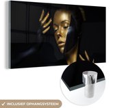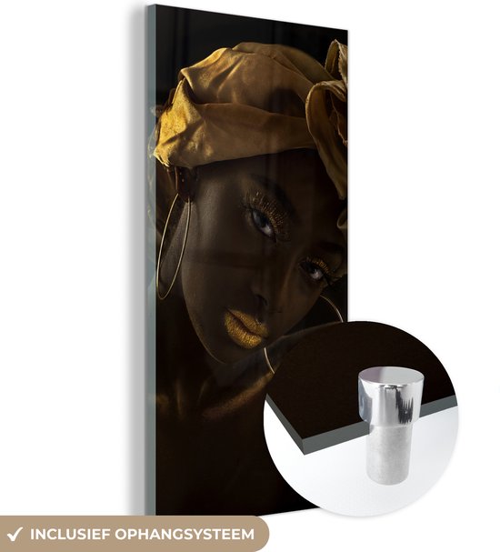 MuchoWow® Peinture sur Verre - Femmes - Foulard - Or - Luxe - 80x160 cm - Peintures sur Verre Acrylique - Photo sur Glas