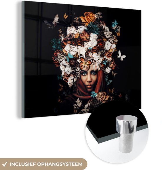 Peinture sur Verre - Papillon - Femme - Luxe - 60x80 cm - Peintures sur Verre Peintures - Photo sur Glas