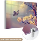 MuchoWow® Peinture sur Verre - Fleurs - Papillon - Femmes - Foulard - 40x30 cm - Peintures sur Verre Acrylique - Photo sur Glas
