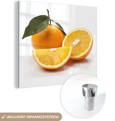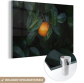 MuchoWow® Peinture sur Verre - Fruits - Orange - Feuilles - 80x60 cm - Peintures sur Verre Acrylique - Photo sur Glas