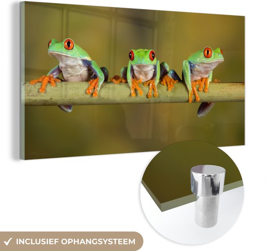 MuchoWow® Peinture sur Verre - Grenouilles - Branche - 40x20 cm - Peintures Acrylique - Photo sur Glas