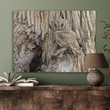 Cette chouette a une couleur de camouflage parfaite! Avec ses plumes brunes, il tombe presque complètement contre l'arbre. Seuls ses yeux brillants sont encore visibles. Illuminez l'intérieur de votre salon avec cette image.Spécifications produit
