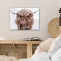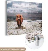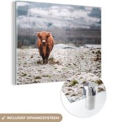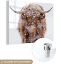 MuchoWow® Peinture sur Verre - Highlander écossais - Cornes - Neige - 40x30 cm - Peintures sur Verre Acrylique - Photo sur Glas