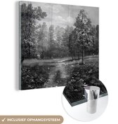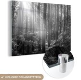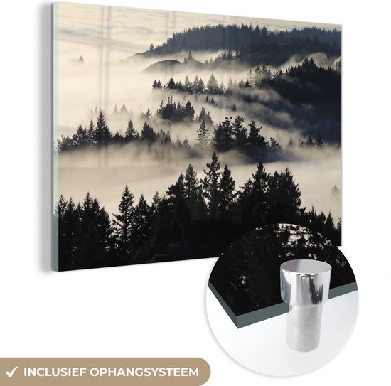 MuchoWow® Peinture sur Verre - Illustration Zwart& Blanc de Redwood dans le Brouillard - 90x60 cm - Peintures sur Verre Acrylique - Photo sur Glas