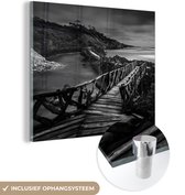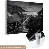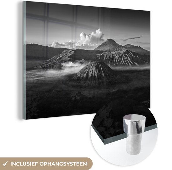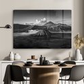 MuchoWow® Peinture sur verre - Indonésie - Volcan - Zwart - Wit - 90x60 cm - Peintures sur verre acrylique - Photo sur Glas