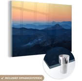 MuchoWow® Peinture sur verre 30x20 cm - Peinture sur verre acrylique - Silhouettes de montagnes au lever du soleil - Photo sur verre - Peintures