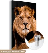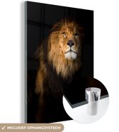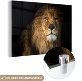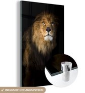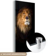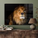 MuchoWow® Peinture sur Verre - Lion - Lumière - Zwart - Portrait - 80x120 cm - Peintures sur Verre Peintures - Photo sur Glas