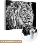 MuchoWow® Peinture sur Verre - Portrait - Lion - Zwart - Wit - 80x60 cm - Peintures sur Verre Acrylique - Photo sur Glas