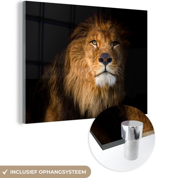 MuchoWow® Peinture sur verre - Lion - Lumière - Zwart - Portrait - 80x60 cm - Peintures sur verre acrylique - Photo sur Glas