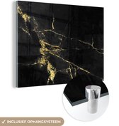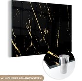 MuchoWow® Peinture sur Verre - Marbre - Zwart - Or - Luxe - 60x90 cm - Peintures sur Verre Peintures - Photo sur Glas
