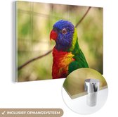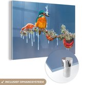 MuchoWow® Peinture sur Verre - Martin-pêcheur - Ressorts - Branche - Blauw - 150x100 cm - Peintures sur Verre Acrylique - Photo sur Glas