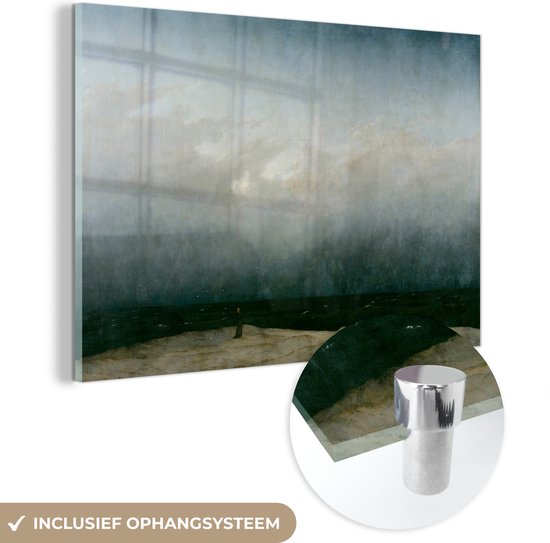 MuchoWow® Peinture sur Verre - Moine au Bord de la Mer - Peinture de Caspar David Friedrich - 60x40 cm - Peintures sur Verre Acrylique - Photo sur Glas