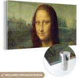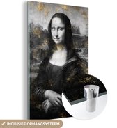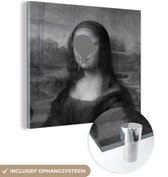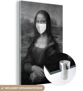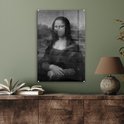 MuchoWow® Peinture sur Verre - Mona Lisa avec un masque bleu foncé - peinture de Leonardo de Vinci - noir et blanc - 40x60 cm - Peintures sur Verre Acrylique - Photo sur Glas