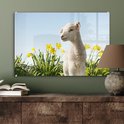 MuchoWow® Peinture sur Verre - Moutons - Fleurs - Printemps - 60x40 cm - Peintures sur Verre Acrylique - Photo sur Glas