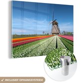 MuchoWow® Peinture sur Verre - Moulin à Vent parmi les Tulipes aux Nederland - 150x100 cm - Peintures sur Verre Acrylique - Photo sur Glas