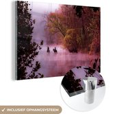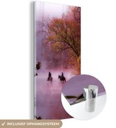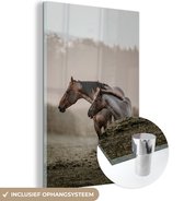MuchoWow® Peinture sur Verre - Paarden - Brouillard - Forêt - 120x80 cm - Peintures sur Verre Peintures - Photo sur Glas
