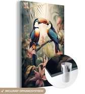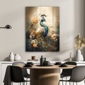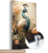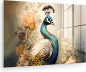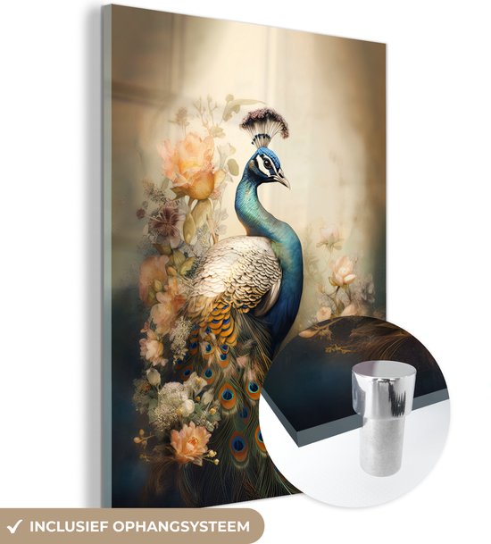 MuchoWow® Peinture sur verre - Paon - Plumes de paon - Fleurs - Vogels - Botanique - 60x80 cm - Peintures sur verre acrylique - Photo sur Glas