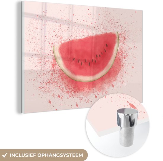 MuchoWow® Peinture sur Verre - Pastèque - Fruit - Pastel - Été - 90x60 cm - Peintures sur Verre Acrylique - Photo sur Glas