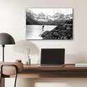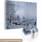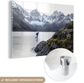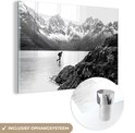 MuchoWow® Peinture sur verre - Patineur dans un paysage hivernal avec des montagnes - noir et blanc - 60x40 cm - Peintures sur verre acrylique - Photo sur Glas