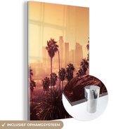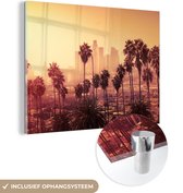 MuchoWow - Peinture sur verre - Photo sur verre - Palmier - Los Angeles - Skyline - Verre acrylique - 30x20 cm - Peinture sur verre ville - Peinture sur verre - Décoration murale - Peintures salon