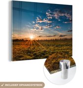 Enrichissez votre intérieur avec une photo sur verre de MuchoWow! Cette décoration murale montre un coucher de soleil qui donne aux environs une lueur orange.Spécifications produit