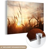 MuchoWow - Peinture sur verre - Photo sur verre - Roseau - Herbe - Soleil - Nature - 40x20 cm - Image sur verre - Décoration murale - Peinture nature - Verre acrylique