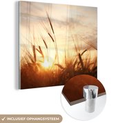 MuchoWow - Peinture sur verre - Photo sur verre - Roseau - Herbe - Soleil - Nature - 80x60 cm - Image sur verre - Décoration murale - Peinture nature - Verre acrylique