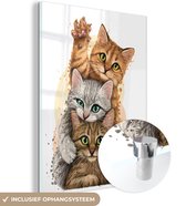 MuchoWow - Peinture sur verre - Photo sur verre - Verre acrylique - Chatons - Chats - Animaux - Dessin - Décoration murale - 90x120 cm - Décoration murale verre - Peinture sur verre animaux - Chambre
