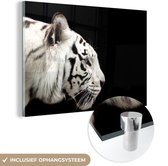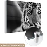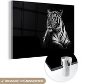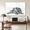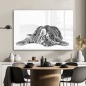 MuchoWow® Peinture sur Verre - Tigre Endormi - noir et blanc - 90x60 cm - Peintures sur Verre Acrylique - Photo sur Glas