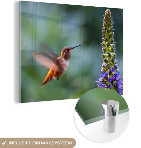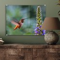 MuchoWow® Peinture sur verre - Vogel - Colibri - Bloem - 40x30 cm - Peintures sur verre acrylique - Photo sur Glas