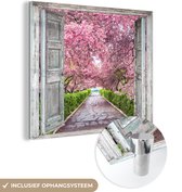 MuchoWow® Peinture sur Verre - Voir à Travers - Sakura - Fleur - Japonais - 90x90 cm - Peintures sur Verre Acrylique - Photo sur Glas