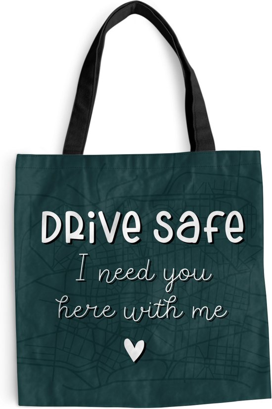 MuchoWow® Sac à bandoulière - Sac de plage - Big Shopper - Sac de courses - Citations - Dictons - Drive prudemment J'ai besoin de toi ici avec moi - Voiture - 45x45 cm - Sac en coton
