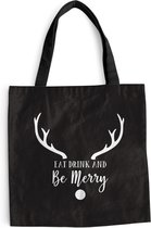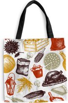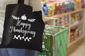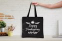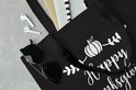 MuchoWow® Sac bandoulière - Sac de plage - Big Shopper - Sac shopping - Citation "Happy Thanksgiving" décoration murale vacances blanc sur noir - 45x45 cm - Sac en coton