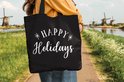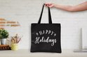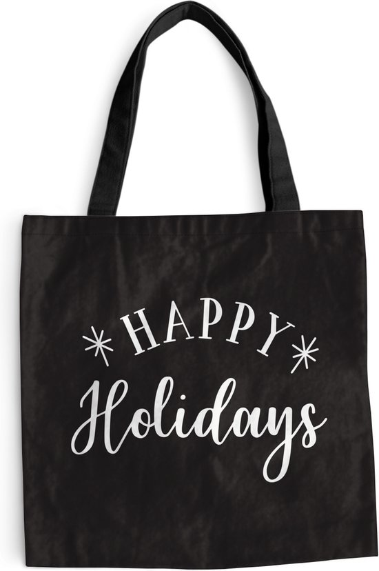 MuchoWow® Sac bandoulière - Sac de plage - Shopper Quote Happy Holidays décoration murale nouvel an noir - 40x40 cm - Sac en coton