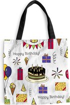 Le sac est en tissu polyester avec une structure en coton. Le sac de transport a deux anses en coton. De plus, le sac à main est lavable à 30 degrés. Le sac est également léger et pliable, vous pouvez donc toujours l'avoir avec vous. Vous voulez vraiment ce client !