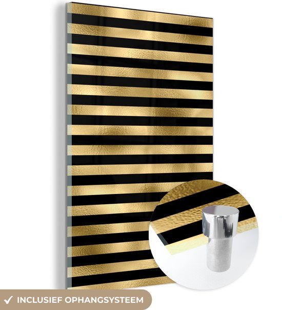 MuchoWow® Tableau en verre 60x90 cm - Peinture acrylique sur verre - Motifs - Rayures - Goud - Photo sur verre - Tableaux