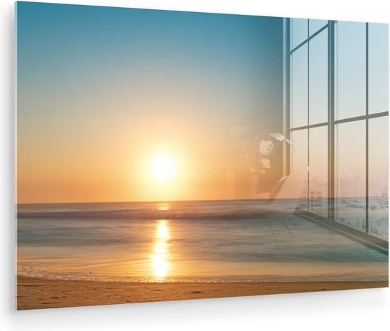 MuchoWow® Tableau sur verre 180x120 cm - Tableau sur verre acrylique - Mer - Couleurs - Soleil - Photo sur verre - Décoration murale salon - Décoration murale chambre - Peintures