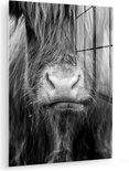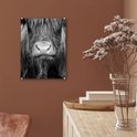 Tableau sur verre - Highlander écossais - Vache - Zwart - Wit - Animaux - Salon - Chambre