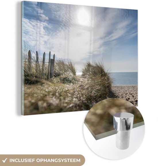 MuchoWow® Tableau sur verre 40x30 cm - Tableau sur verre acrylique - Soleil - Nuages - Plage - Photo sur verre - Décoration murale salon - Décoration murale chambre - Peintures