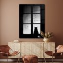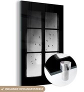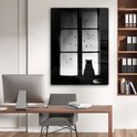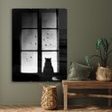 MuchoWow® Tableau sur verre 90x120 cm - Tableau sur verre acrylique - Chat - Animaux - Zwart et blanc - Fenêtre - Photo sur verre - Décoration murale salon - Décoration murale chambre - Peintures
