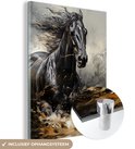 MuchoWow® Tableau sur verre 90x120 cm - Tableau sur verre acrylique - Paarden - Zwart - Wit - Animaux - Photo sur verre - Décoration murale salon - Décoration murale chambre - Peintures