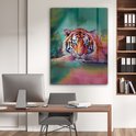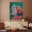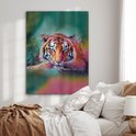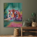MuchoWow® Tableau sur verre 90x120 cm - Tableau sur verre acrylique - Tigre - Peinture à l'huile - Animaux - Art - Photo sur verre - Décoration murale salon - Décoration murale chambre - Peintures