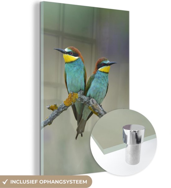 MuchoWow® Tableau sur Verre - Deux Mignons Guêpiers Regarder Ailleurs - 100x150 cm - Peintures sur Verre Acrylique - Photo sur Glas
