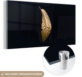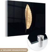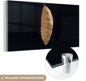 MuchoWow® Tableau sur Verre - Feuilles - Noir et Or - Luxe - Chic - Nature - 80x160 cm - Peintures sur Verre Acrylique - Photo sur Glas