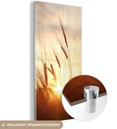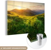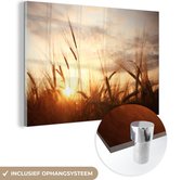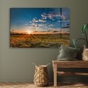 MuchoWow - Tableau sur verre - Photo sur verre - Herbe - Coucher de soleil - Nuages - Nature - 120x80 cm - Décoration murale - Verre acrylique - Tableau nature - Tableau verre