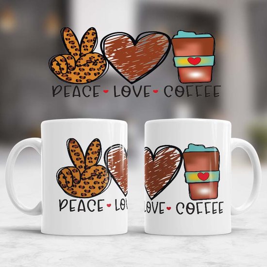Mug Peace love coffee - Café - Coffee - Amateur de café - Amateur de Coffee - Cadeau - tasse de café