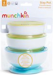 Pour réduire au minimum les déversements, Munchkin a créé ces bols avec des ventouses. Fixez simplement la ventouse à la table ou à la chaise haute et retirez-la facilement après avoir mangé avec le clip de ventouse pratique. Les bols ont des côtés hauts et incurvés pour que votre enfant puisse manger plus facilement. Les bols ont trois tailles différentes afin de pouvoir être utilisés avec n'importe quel repas ou collation. Les bols conviennent au panier supérieur du lave-vaisselle et peuvent être placés au micro-ondes. La ventouse doit être lavée avec de l'eau et du liquide vaisselle avant utilisation.